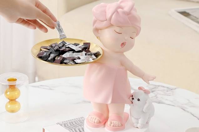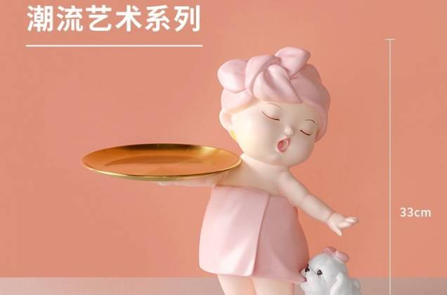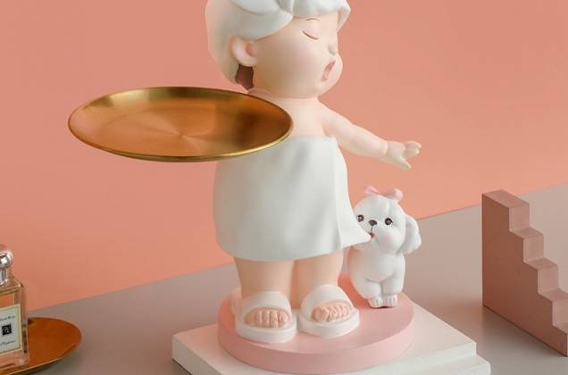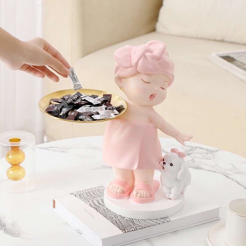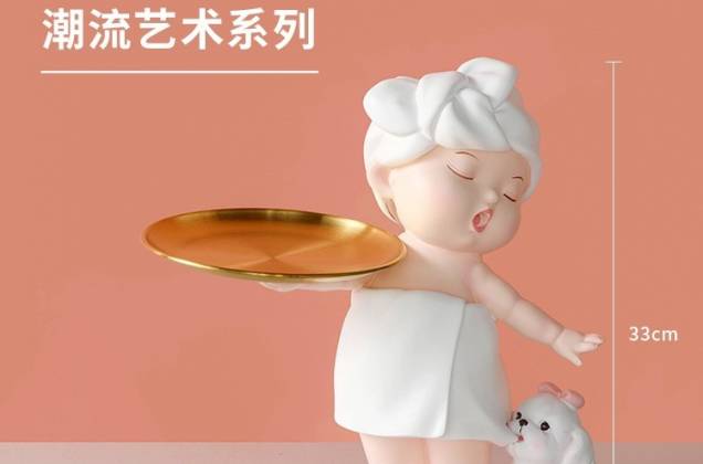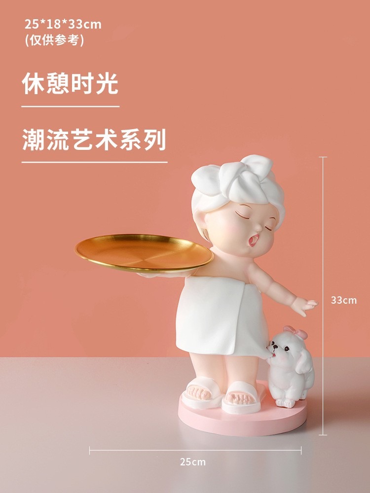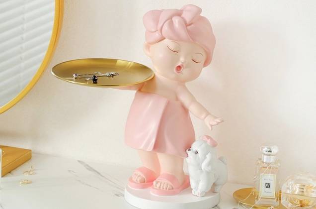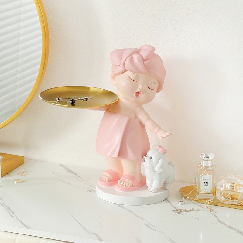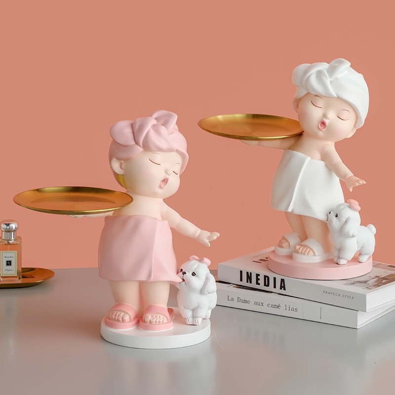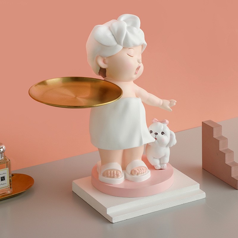 ตุ๊กตาสาวน้อยอาบน้ำถือถาด งานเรซิ่นนำเข้า